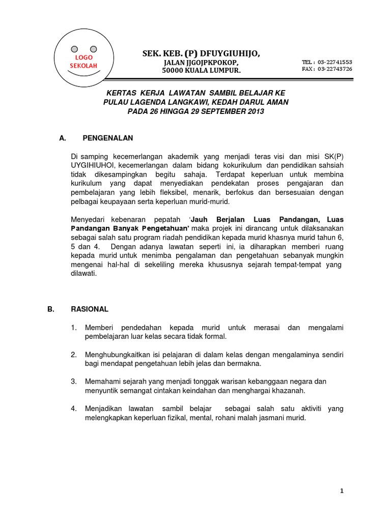 Contoh Kertas Kerja Untuk Lawatan Sekolah